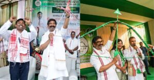 रांची/असम: झारखंड के मुख्यमंत्री हेमंत सोरेन ने गुरुवार को असम के खुमताई में झारखंड मुक्ति मोर्चा के प्रत्याशी अमित नाग के समर्थन में चुनाव प्रचार किया। इस दौरान उन्होंने तीर-धनुष चुनाव चिन्ह को जनता के संघर्ष और सम्मान का प्रतीक बताया।