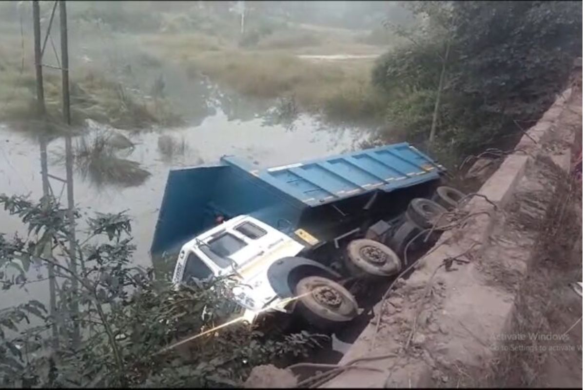 सरायकेला: हाइवा पुल की रेलिंग तोड़ते हुए नदी में गिरा, चालक सुरक्षित