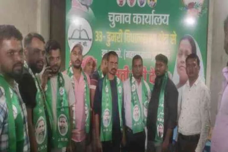 डुमरी (गिरिडीह): डुमरी के बेरमो मोड़ स्थित झामुमो के चुनाव कार्यालय में शनिवार को बड़ा राजनीतिक घटनाक्रम देखने को मिला। दूसरे दलों के दर्जनों कार्यकर्ता झामुमो में शामिल हो गए। झामुमो प्रत्याशी और राज्य की मंत्री बेबी देवी के पुत्र अखिलेश महतो उर्फ राजू ने नए सदस्यों का पारंपरिक झामुमो का पट्टा पहनाकर स्वागत किया।