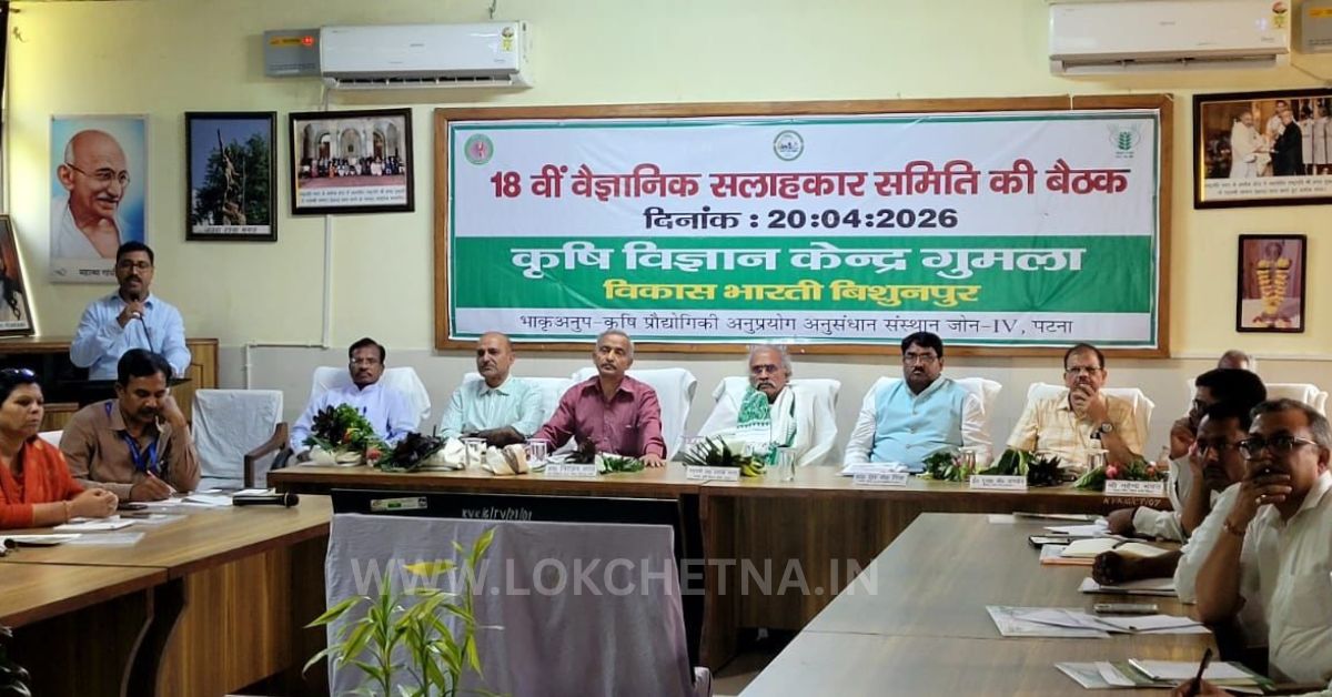 गुमला: कृषि विज्ञान केंद्र गुमला में 18वीं वैज्ञानिक सलाहकार समिति की बैठक गंभीर और वैज्ञानिक वातावरण में संपन्न हुई। विकास भारती बिशुनपुर द्वारा संचालित इस संस्थान में आयोजित बैठक का मुख्य उद्देश्य जिले में कृषि एवं उससे जुड़े क्षेत्रों में किए जा रहे कार्यों की समीक्षा करना और वर्ष 2026-27 के लिए व्यावहारिक एवं वैज्ञानिक कार्ययोजना तैयार करना था।
