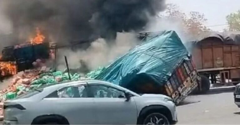 आग की लपटें पास चल रहे ट्रक तक पहुंच गईं, जिससे उसका अगला हिस्सा भी जलने लगा। ट्रक में लदे कोल्ड ड्रिंक के कार्टन भी जलकर राख हो गए।