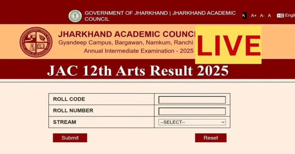 रांची: झारखंड एकेडमिक काउंसिल (JAC) ने JAC 12th Arts Result 2025 को आधिकारिक रूप से जारी कर दिया है। इस बार झारखंड बोर्ड की 12वीं आर्ट्स स्ट्रीम में परीक्षा देने वाले लाखों छात्र-छात्राओं के लिए राहत की खबर है। अब परीक्षार्थी अपना JAC 12th Arts result आधिकारिक वेबसाइटों पर जाकर ऑनलाइन चेक कर सकते हैं।