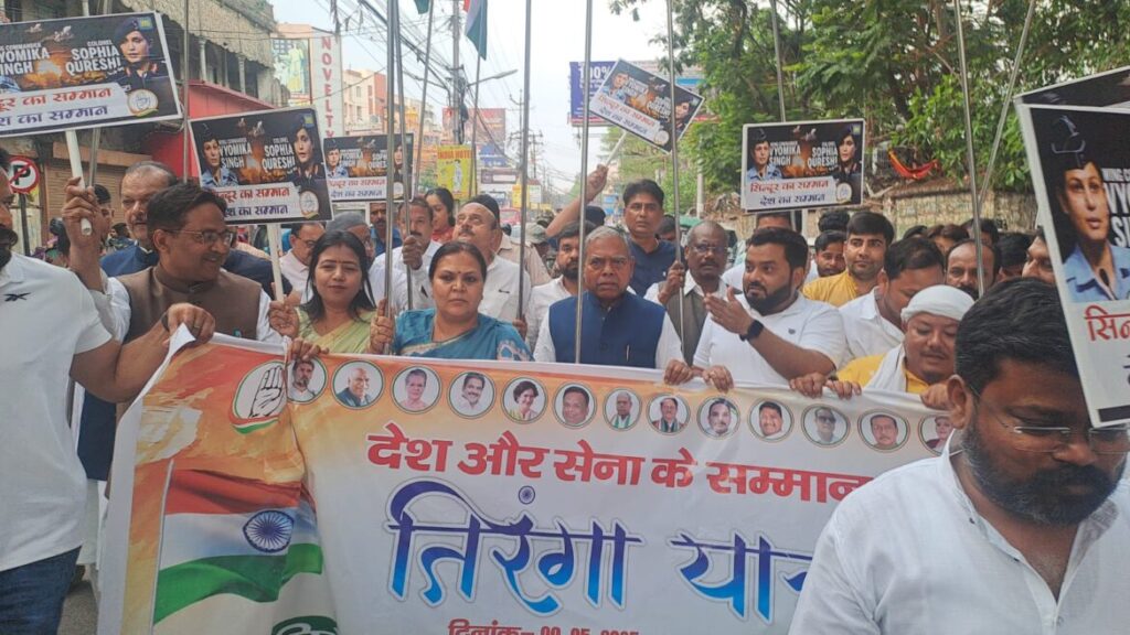 रांची: भारतीय सेना द्वारा हाल ही में ऑपरेशन सिंदूर के तहत पाकिस्तान में आतंकी ठिकानों पर की गई कार्रवाई के समर्थन में झारखंड प्रदेश कांग्रेस कमेटी ने शुक्रवार को राजधानी रांची में तिरंगा यात्रा निकाली। यह यात्रा कांग्रेस भवन से शुरू होकर अल्बर्ट एक्का चौक तक गई, जिसका नेतृत्व प्रदेश कांग्रेस अध्यक्ष केशव महतो कमलेश ने किया।