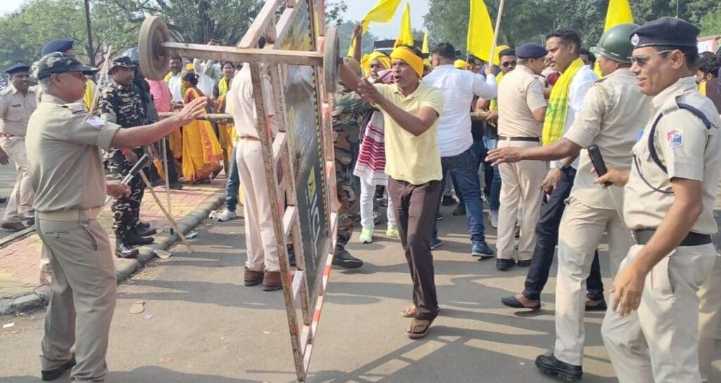 कुड़मी आंदोलनकारियों ने तोड़ी बैरिकेडिंग, स्टेशन परिसर में नारेबाजी