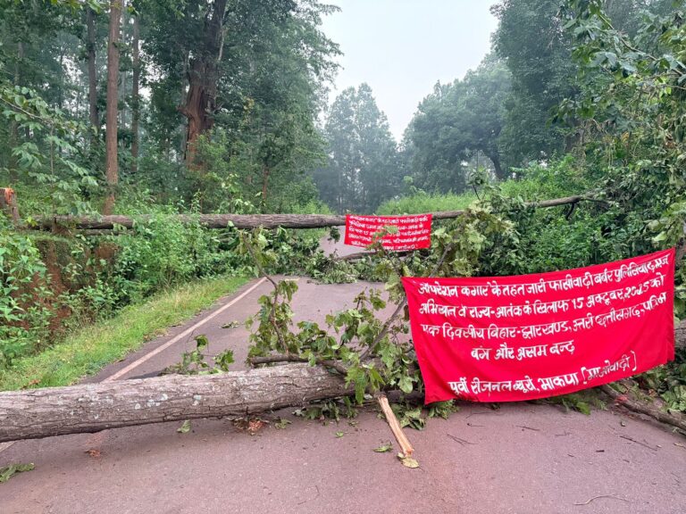 Home » चाईबासा में नक्सलियों की बड़ी हरकत: ऑपरेशन कगार के विरोध में पोस्टरबाजी, पेड़ काटकर सड़क जाम