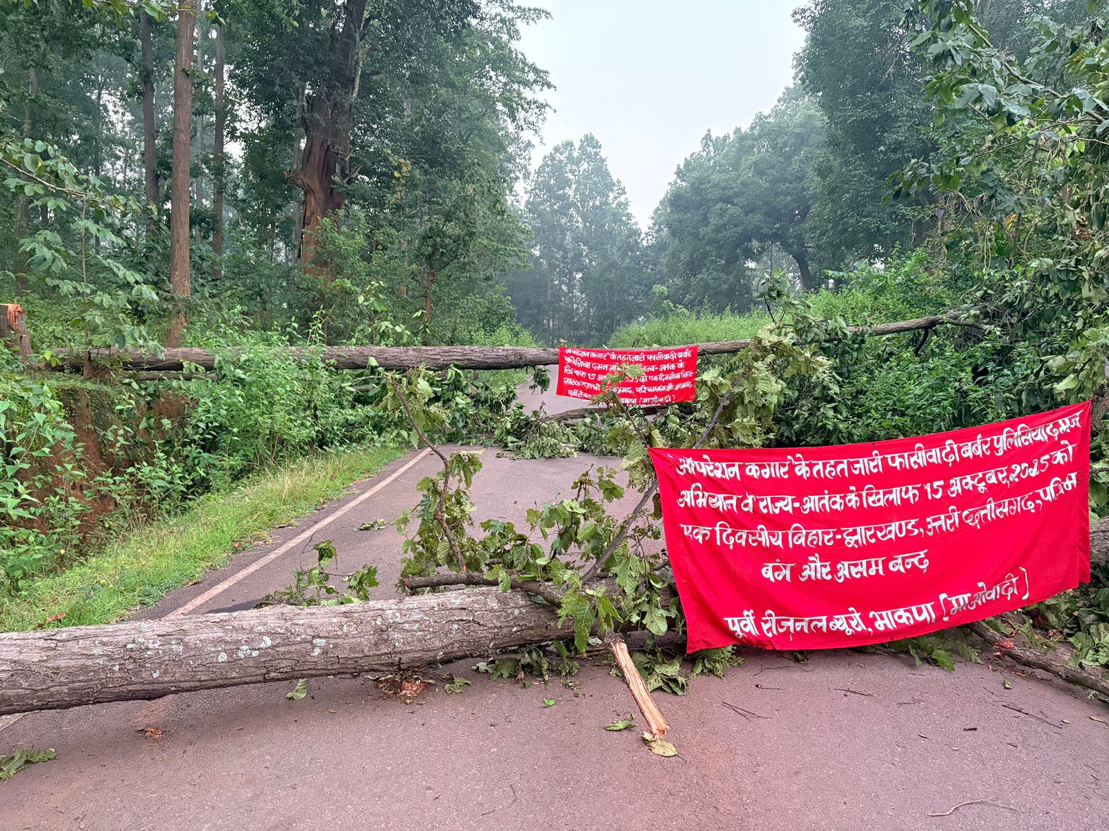 चाईबासा में नक्सलियों की बड़ी हरकत: ऑपरेशन कगार के विरोध में पोस्टरबाजी, पेड़ काटकर सड़क जाम